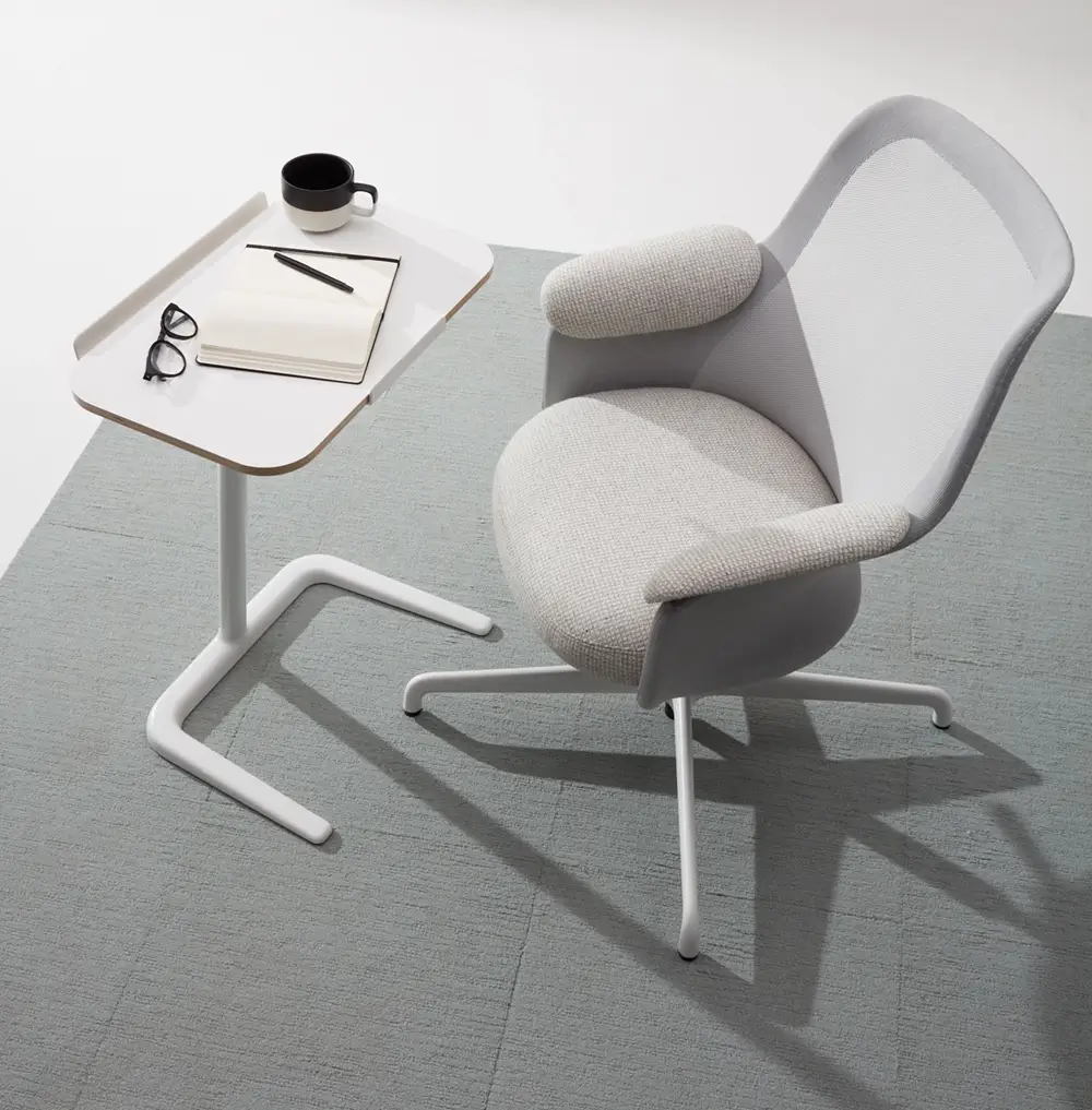 Engineered for comfort, the Aarea chairs conform to the natural shape of the body, delivering tailored ergonomic support through its flexible knit backrest. The top of the frame is diecast to reinforce the part of the structure where the head rests, providing an enhanced level of ergonomic refinement and finesse. Meanwhile, the textile-covered foam seat cushion contours to each user to provide a comfortable sitting surface throughout the workday. A weight-sensitive mechanism and intuitive adjustments ensure comfort for a wide range of activities, from focused work to collaborative meetings.