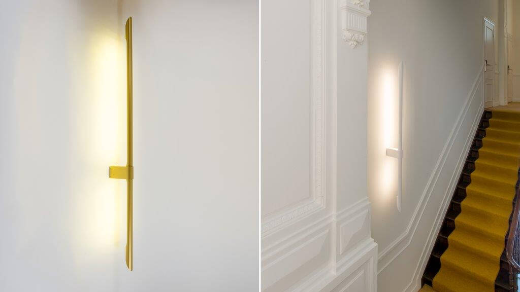 Discover the Aguja wall lamp designed by the famous Spanish design studio Ricardo Bofill Taller de Arquitectura for the Belgian brand DARK. Its name “Aguja” meaning arrow in Spanish recalls its slender and very design-oriented shape bringing a chic and classy style to your interior. This wall lamp is available in white, black or gold.