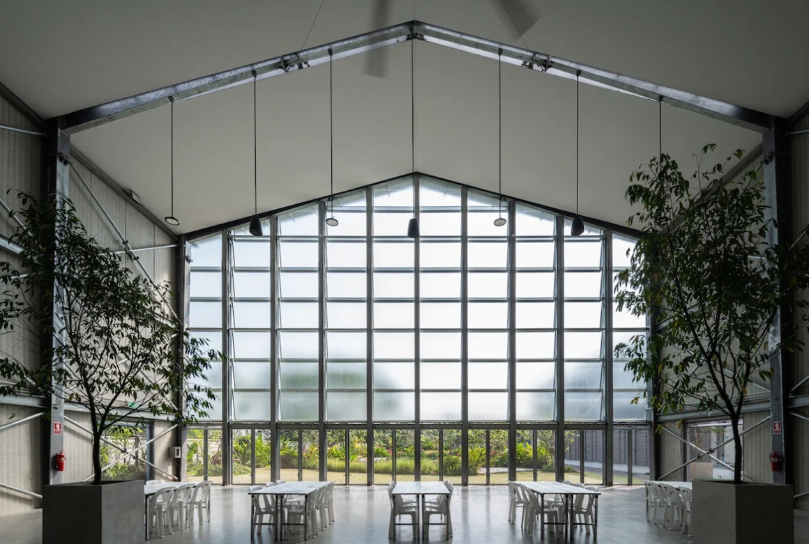 Regardless of their functional and programmatic differences, prefabricated steel portal frames are employed as the main structures for all three buildings.