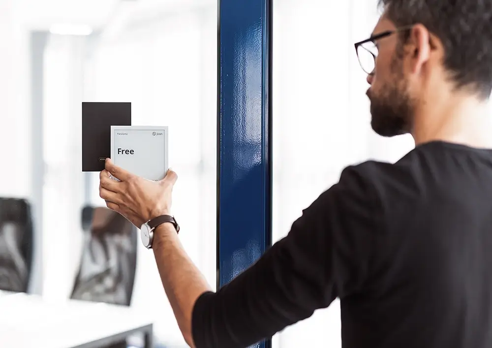 Joan 6 Pro by Visionect is a next-generation e-paper meeting room scheduler for the new flexible workspace that ensures a calm and safe collaborative work by eliminating meeting interruptions and double bookings.