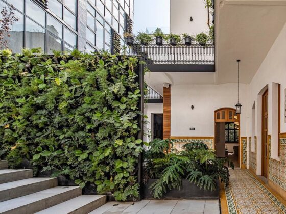 The landscape is integrated with architecture to create sensorial experiences that contribute to improved mental health.