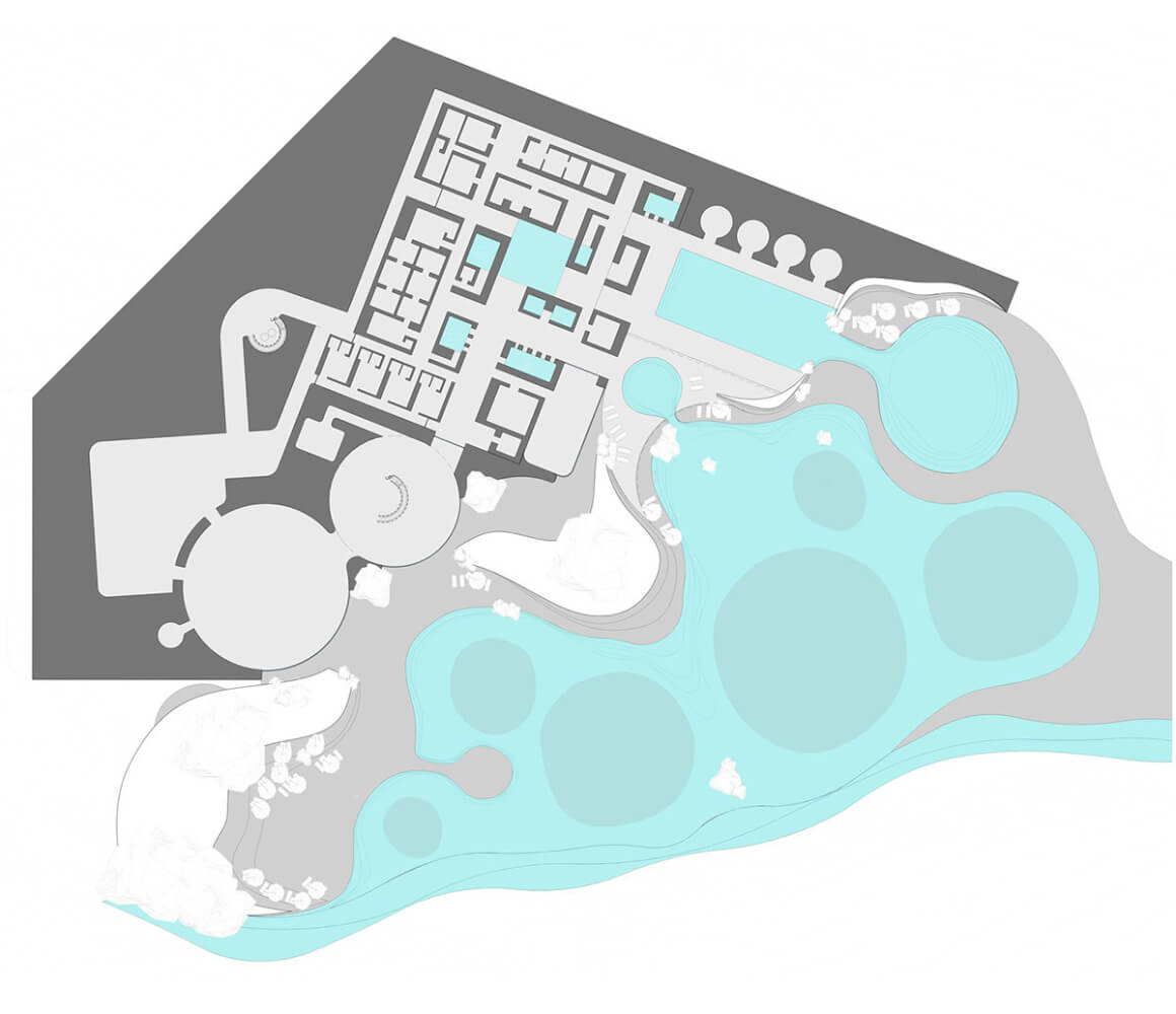 The unique physical texture of the area, historical sites, and thermal water that emerged during the site investigation has been the main elements shaping the project.