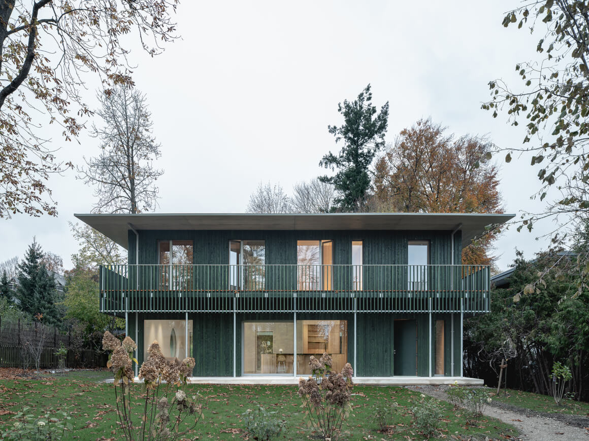 In Utting, Arnold / Werner built a consistently sustainable and ecological house on 800 m². In the surroundings of a growing village structure with old trees, a house was built here within walking distance of Lake Ammersee, which deals with the topic of future-oriented and resource-conserving construction.