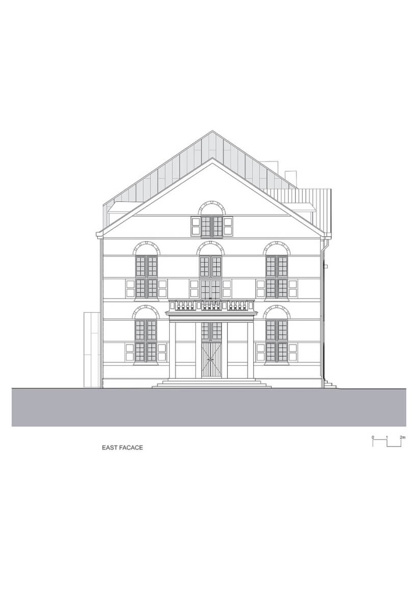 The new façade is implemented in the rear part of the historic building.