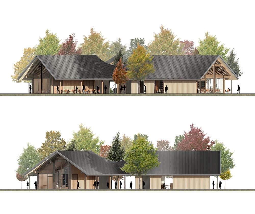 “We divided the functions under a triple-winged roof, offering an outdoor experience. Visitors and foresters alike can move between them on an equal level,” says Albert Takashi Richters, Associate Architect at the Powerhouse Company.
