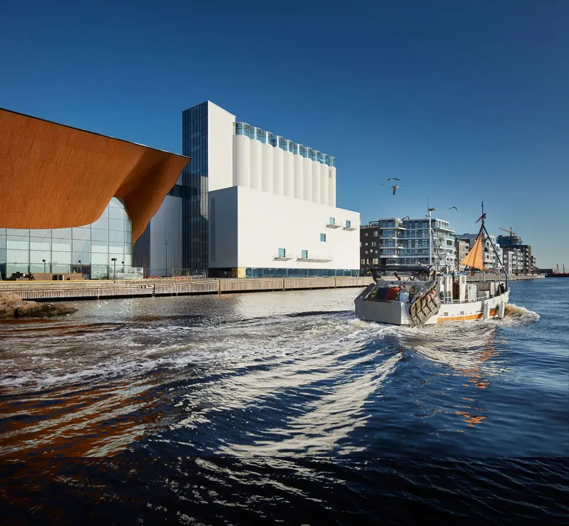 Designed by Mestres Wåge Arquitectes, BAX Studio, and Mendoza Partida, the new 8,500-square-meter Nordic art museum in Kristiansand is a world-class cultural venue housed in a transformed former grain silo.