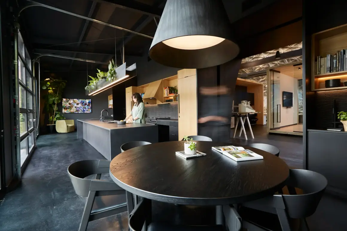 Surrounding the warehouses in the secure complex are garden spaces, including outdoor meeting and lounge areas, an event area, a cultivation garden, an outdoor cooking zone and a fire pit. It is our goal to create a vibrant space for designers, artists, and the community to connect for special events and critical discourse.