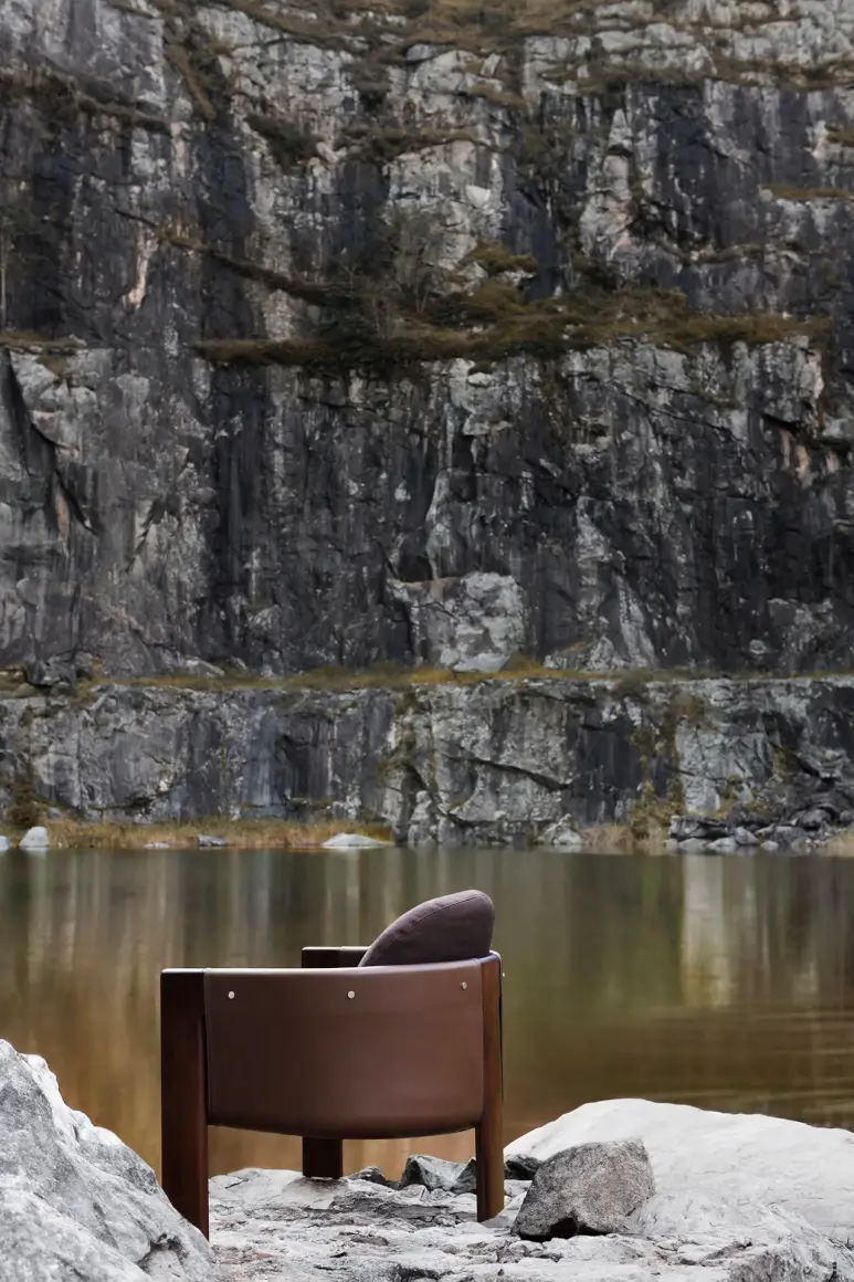 The Solis armchair is curved in leather and stands on a tripod, with lightness, but at the same time evoking the strength of a throne.
