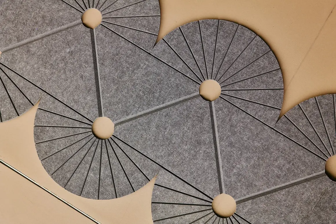 The team channeled their respective expertise in acoustic engineering, material research and design innovation into the unique sound-absorbing luminaire.