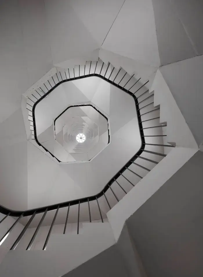 Loggias set within the masonry facades run the full height of the building.