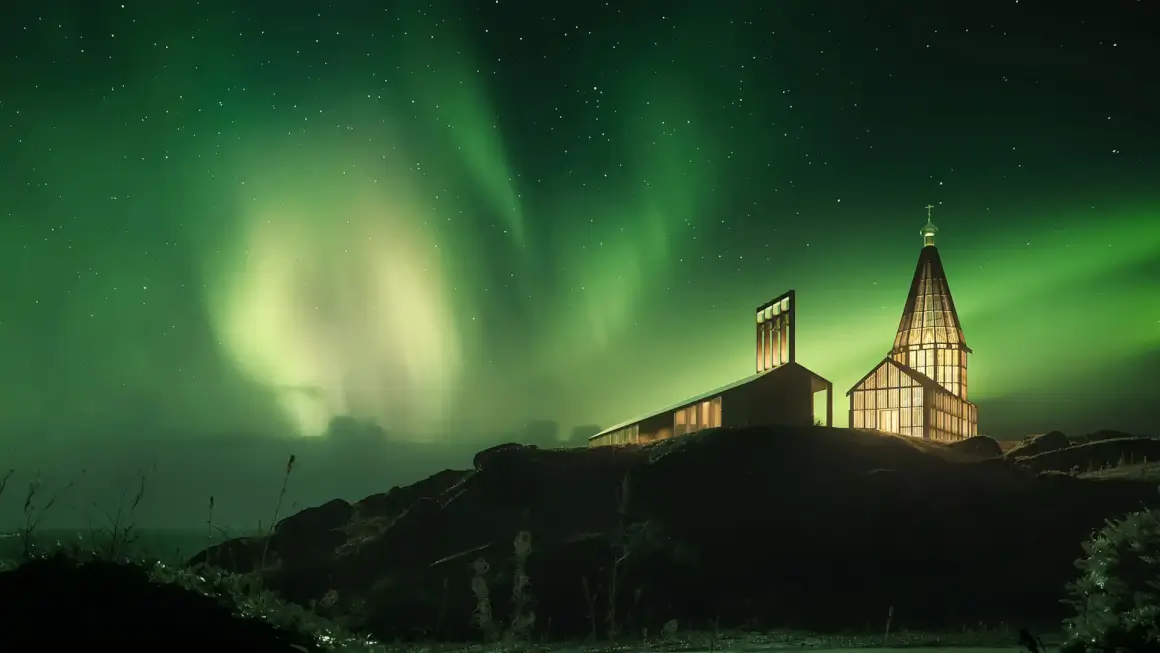 The space around the temple becomes a public square, making the temple a center of spiritual and cultural life. The complex includes the temple itself and a separate building with a belfry, a church shop and a refectory. Located on a hill, the temple becomes a landmark and symbol for local residents. Its transparent structure is reminiscent of a lighthouse, which attracts attention and serves as a gathering place for everyone. The transparent walls of the temple also allow to observe the northern lights – a unique natural phenomenon of the northern latitudes.