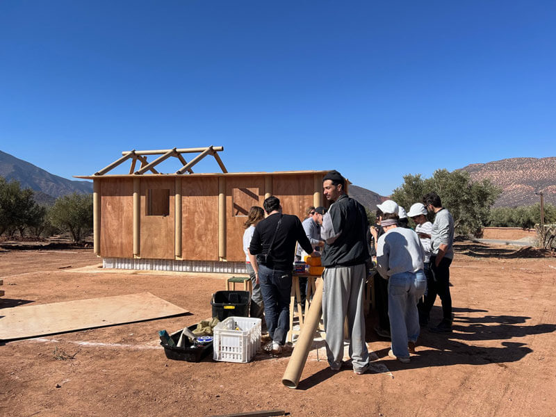 The house, constructed and assisted by local Moroccan architects, Fayçal Tiaïba of Laberinto Studio and Khalil Morad El Ghilali of Atelier Be, was donated to a local NGO to lead the reconstruction efforts.