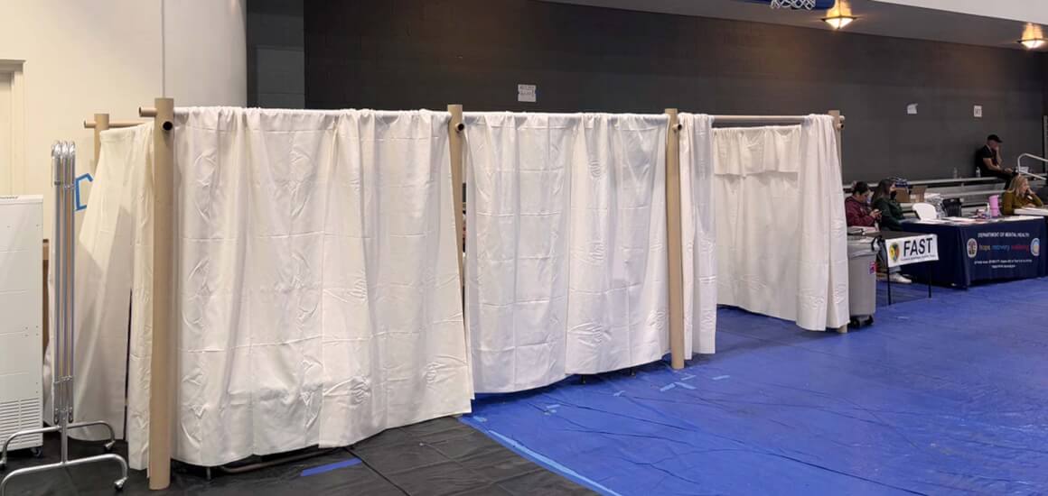 By setting up the PPS around the Red Cross medical area called the “medical bay,” a space was designed to ensure privacy for both the medical staff and the people receiving care.