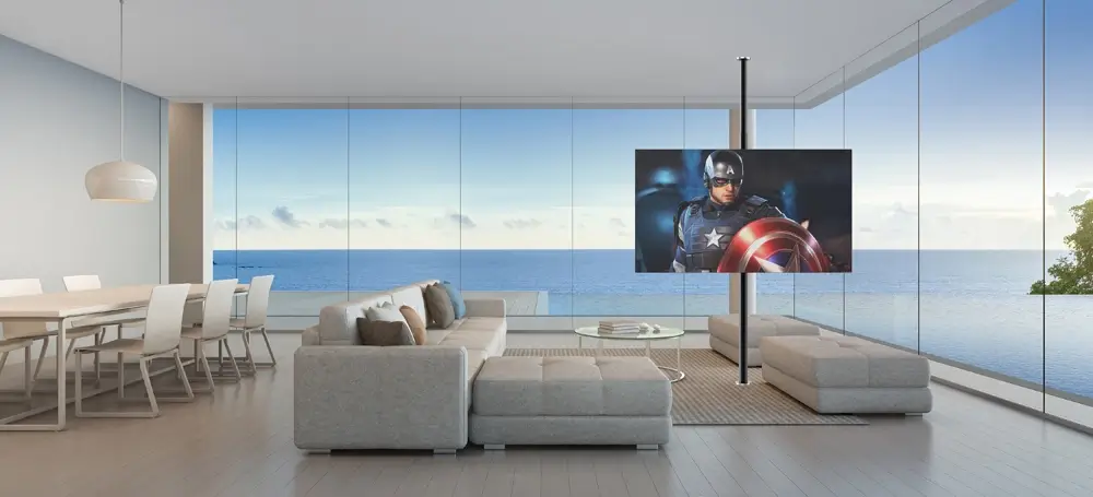 The consistent demand of adjustment of height and direction of display according to the daily comfort needs are met with Flag TV.