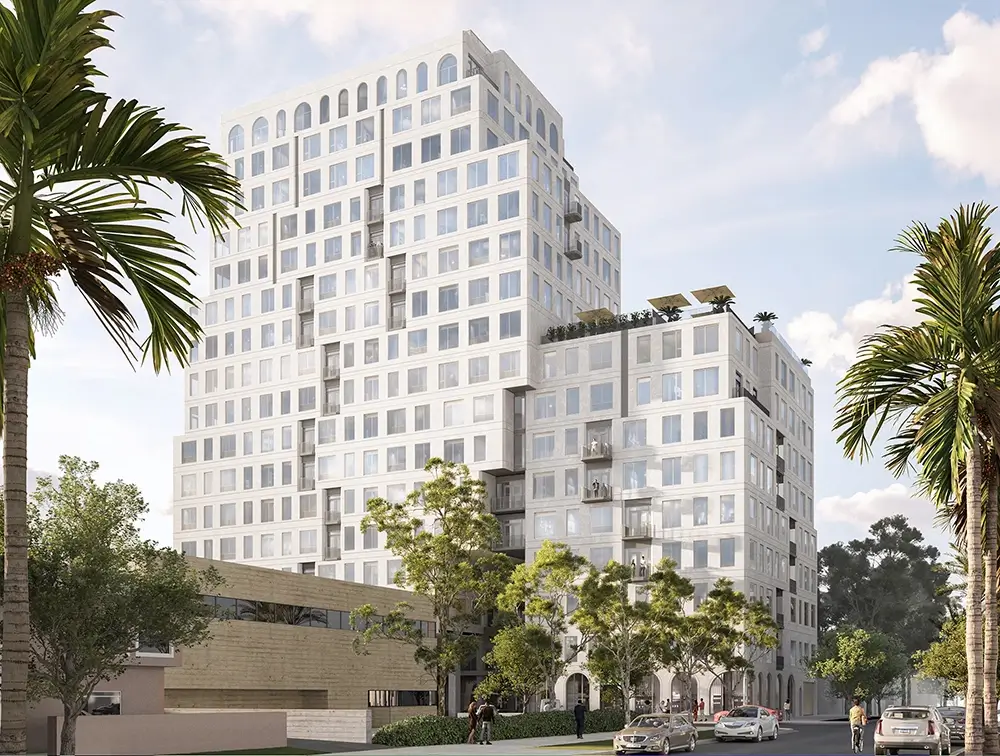Large grand arches along the tower’s base and smaller arched windows patterned across the building’s summit reference the historic architectural language of San Diego and the work of Irving Gill who had a significant impact on the architecture in this area.