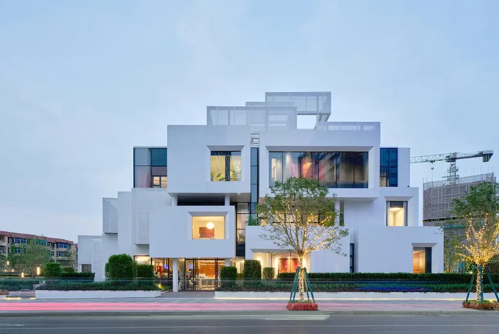 The audio-visual hall, sandbox area, office, model room, tearoom, coffee, meeting, negotiation, signing, VIP reception, indoor garden and other rooms are independent as “quiet” small boxed-shape plug-ins attached to the big space according to the flow line in turn.